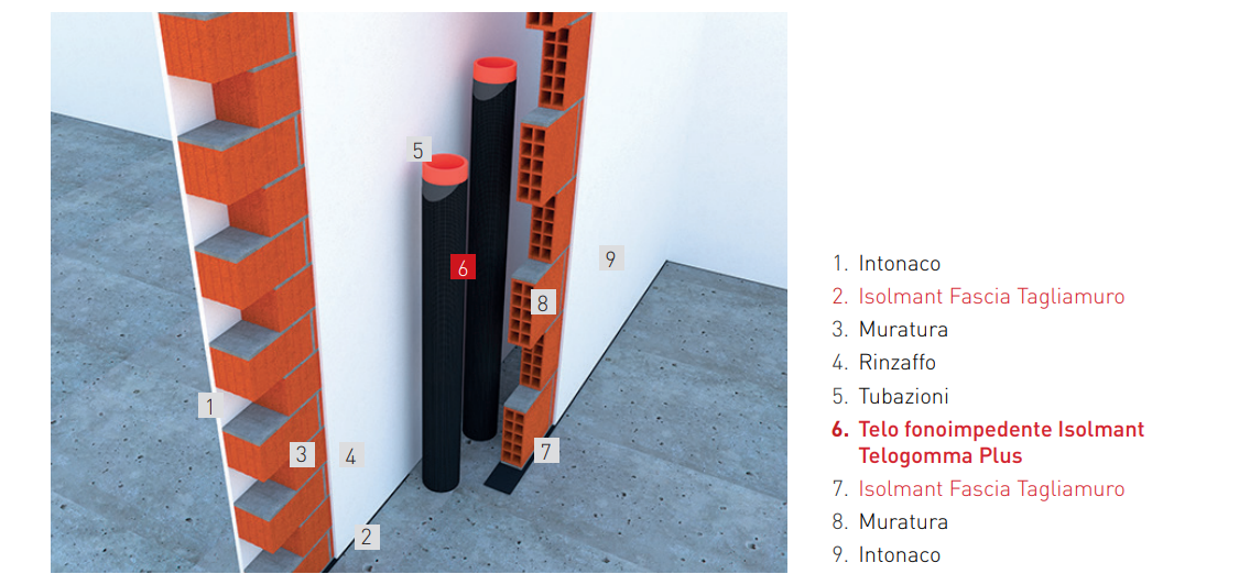 La mousse spéciale Isolmant, quant à elle, amortit les vibrations les plus importantes et empêche les contacts rigides entre les tuyauteries et les éléments de maçonnerie.
